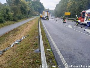 Die Feuerwehr Grebenstein wurde zu einer Ölspur Über der Bahn alarmiert. Nach einen Unfall eines Personenkraftwagen waren Betriebsstoffe ausgelaufen, die durch die Feuerwehr aufgenommen wurden.
