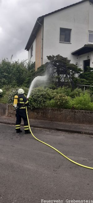 Die Feuerwehren der Stadt Grebenstein wurden zu einem Zimmerbrand in die Königsberger Strasse alarmiert. Vor Ort stellte sich zum Glück heraus, dass beim Unkraut abflammen eine Hecke in Brand geraten war und das Haus selber nicht betroffen war. Beim Eintreffen der Feuerwehr hatten Nachbarn schon mit dem Löschen begonnen und durch die Feuerwehr Schachten waren nur noch Nachlöscharbeiten notwendig, bis die Hecke komplett abgelöscht war.