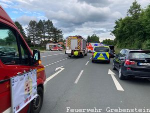 Die Feuerwehren Grebenstein und Burguffeln wurden zu einer Hilfeleistung nach einem Verkehrunfall zur Bundesstrasse 83 bei der Abfahrt Burguffeln alarmiert. Bei einem Zusammenstoss zwischen zwei Personenkraftwagen wurden die Fahrer leicht verletzt und konnten sich selbst aus den Fahrzeugen befreien. Durch die Feuerwehren wurde die Einsatzstelle abgesichert und auslaufende Betriebsstoffe aufgenommen. Die Bundesstrasse war während des Einsatzes voll gesperrt.