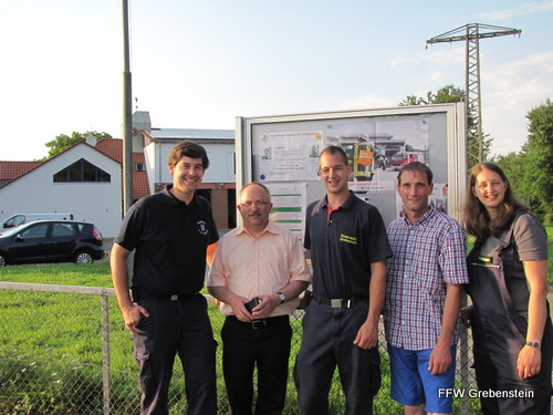 Dirk Lindemann (Wehrführer ), Klaus-Peter Vogt (Stadtsparkasse Grebenstein), Boris Hartmann (stellv. Wehrführer), Henning Schmacke (Vereinsvorsitzender) und Annika Hartmann (Jugendfeuerwehrwartin)