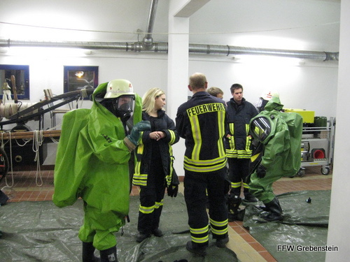 Am Dienstag, den 28.10.2014 fand im Rahmen eines Dienstabends die CSA-Wiederholungsübung der FF Grebenstein statt. 25 Teilnehmer konnten ihr Können & Wissen um Umgang mit dem Thema Chemikalienschutzanzüge und G-ABC Gefahrstoffe auffrischen.
