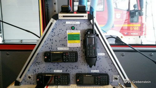In den vergangenen drei Wochen wurden die fünf Einsatzfahrzeuge der FF Grebenstein mit den neuen digitalen Fahrzeugfunkgeräten sowie Ladeerhaltungen für die digitalen Handsprechfunkgeräte ausgestattet. Die Arbeiten wurden von der Firma Wagener Technik GmbH - Fahrzeug nach Fahrzeug in Kassel durchgeführt.