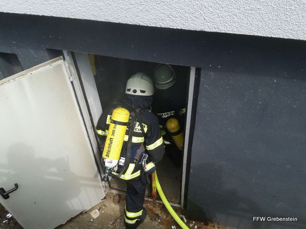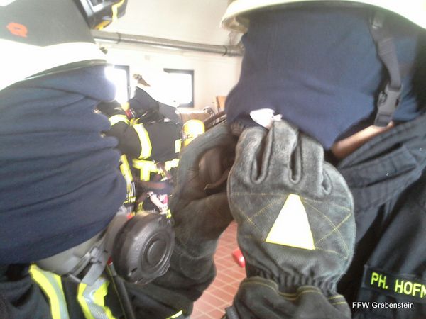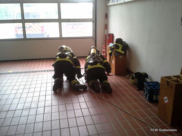 Weiterhin wird eine Gewöhnungsübung bzgl. der Handhabung der Schutzausrüstung und Absuchtechniken für verrauchte Räume verschiedener Größen geübt.