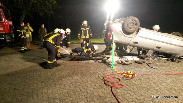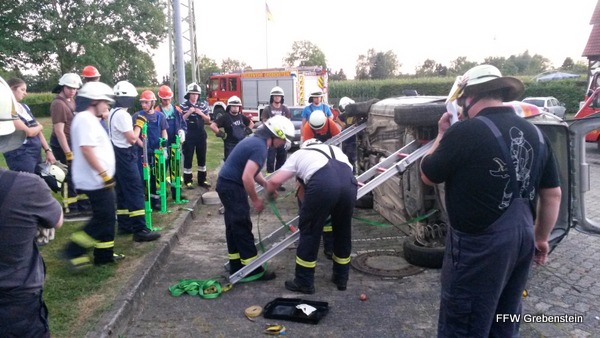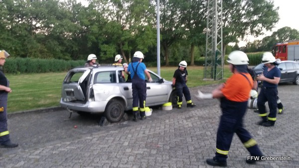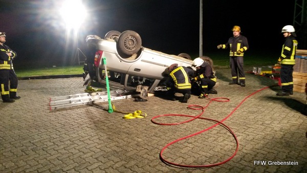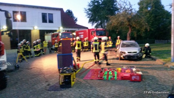 Drei teilige Ausbindung für den Einsatzbereich „Techn. Hilfeleistung nach Verkehrsunfällen“ zeigt seinen Erfolg. An den Übungsabenden am 09. Und 23. August sowie am 06. September beschäftigten sich die Einsatzkräfte der FF Grebenstein mit aufeinander aufbauenden Themen mit möglichen Einsatzszenarien nach Verkehrsunfällen. Angeleitet durch den in den eigenen Reihen neuerdings ausgebildeten „Kreisausbilder TH.VU“ Tobias Krausbilder zunächst eine Gerätekunde und Handhabung geübt. Am folgenden Termin wurde zusammen mit den STT Wehren aus Burguffeln und Udenhausen das Absichern, Sichern und Abstützen von PKW in Stand-, Seiten- und Dachlage mittels Abstützsystem und alternativ mit Steckleitern wiederholt. Im letzten Termin wurde das Schaffen einer sogenannten Rettungsöffnung bei einem PKW in Dachlage simuliert. Verhandene Kenntnisse wurde somit aufgefrischt und neuer Erkenntnisse wurden vermittelt.