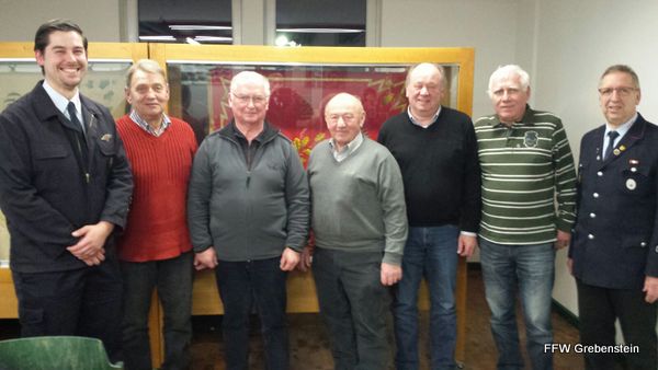 v.l.n.r. Wehrführer Dirk Lindemann, Karl-Heinz Martin, Helmut Steinberg, Wilhelm Kramm, Gerhard Lohmann,