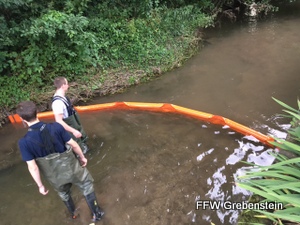 Im vergangenen Jahr wurde durch die Stadt Grebenstein die notwendige Ausrüstung beschafft, um bei ölhaltigen Verunreinigungen auf dem Bach „Esse“ oder den kleineren Bächen in den Stadtteilen fachgerechte Ölsperren zum anschließenden Abschöpfen der Schadstoffe errichten zu können. Nachdem in einem ersten Teil bereits die Theorie geschult wurde, stand nun die Praxis im Vordergrund.
