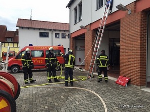 Über Funkmeldeempfänger und Sirene wurden die Einsatzkräfte der FF Grebenstein am Freitagabend um 18:20 Uhr zu einer Einsatzübung in die Hofgeismarer Straße alarmiert.