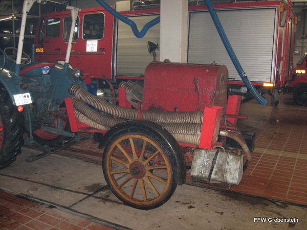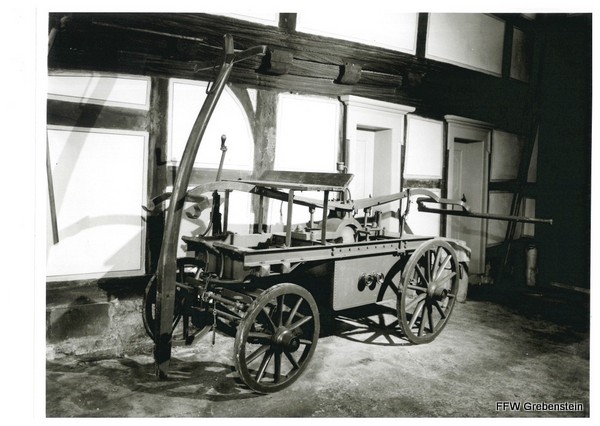Eine alte Feuerspritze aus dem 19. Jahrhundert steht heute im neuen Feuerwehrgerätehaus. Es ist wahrscheinlich das im Jahre 1802 von der Fa. Henschel gebaute Gerät. Lt. Protokollbuch vom 14.12.1890 wurden 300 RM aus der Vereinskasse für eine neue Feuerspritze bewilligt.
