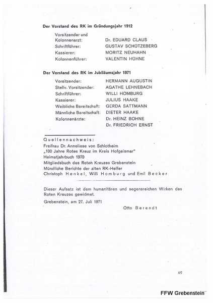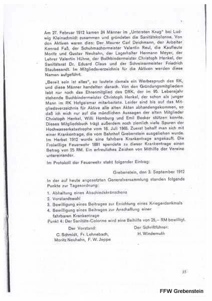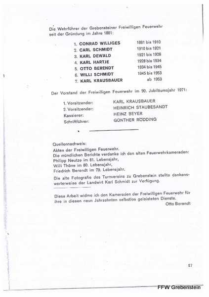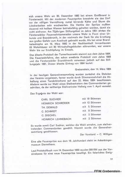 Fortführung Chronik der Feuerwehr Grebenstein bis 2019