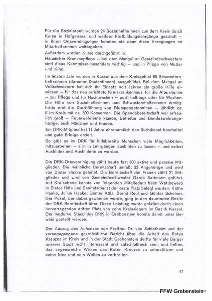 Fortführung Chronik der Feuerwehr Grebenstein bis 2013
