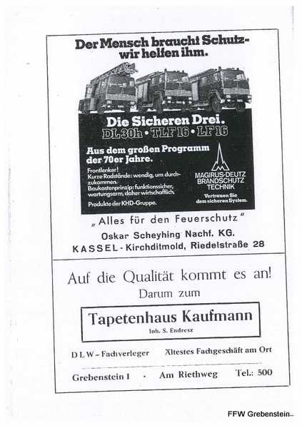 Festzeitschrift 90 Jahre Feuerwehr Grebenstein