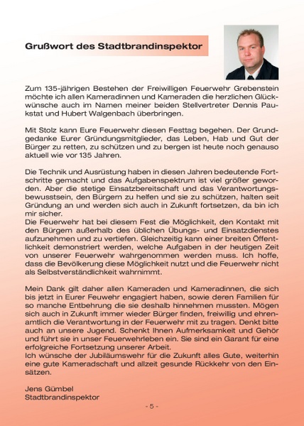 Festzeitschrift zum 135-jährigen der Feuerwehr Grebenstein