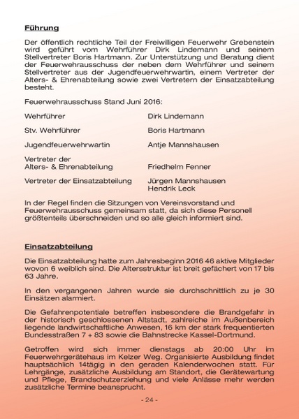Fortführung Chronik der Feuerwehr Grebenstein bis 2016