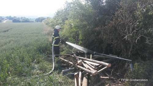 Die Feuerwehr wurde zu Nachlöscharbeiten am Jägerhochsitz in Niederhaldessen alarmiert. Beim Eintreffen der Feuerwehr war nur eine minimale Rauchentwicklung zu sehen. Vorsichtshalber wurde der gesamte Hochsitz nochmals mit Wasser abgelöscht.