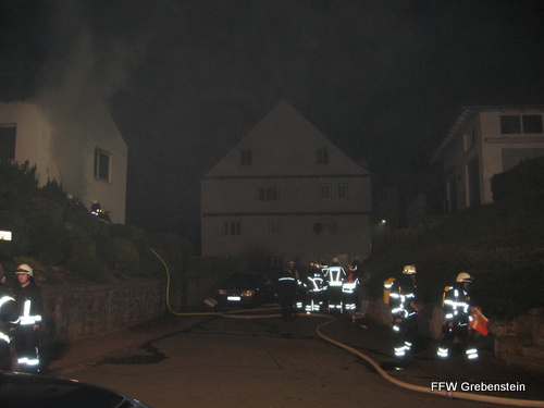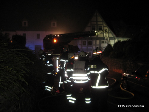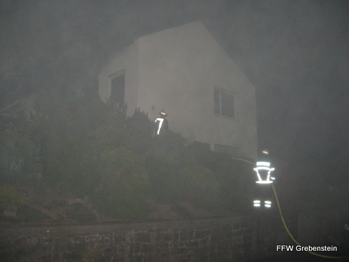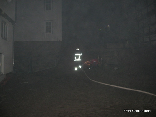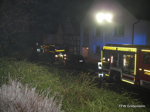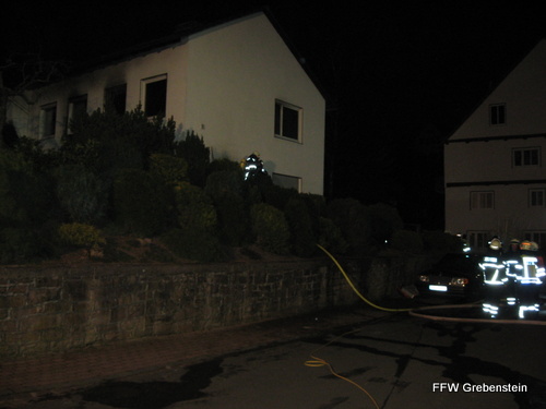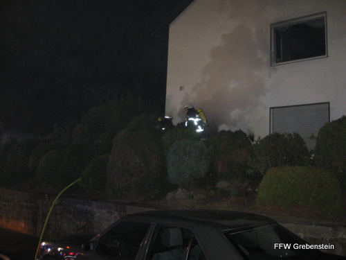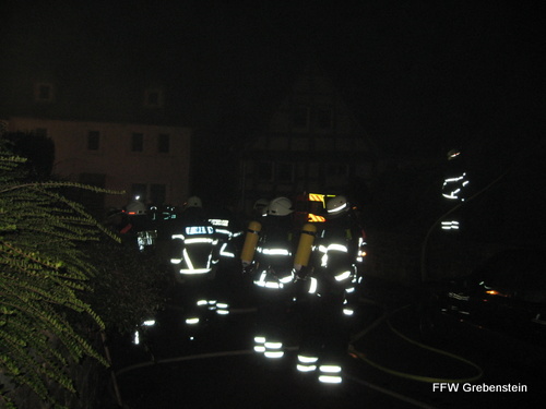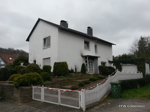Beim Eintreffen der Rettungskräfte war das Gebäude komplett von Rauch umhüllt. Da nicht ausgeschlossenen werden konnte, das das Feuer sich bereits im ganzen Haus ausgebreitet hatte, wurden die Ortsteilwehren Burguffeln, Schachten und Udenhausen und die Drehleiter aus Hofgeismar nach alarmiert. Erst im Verlauf des Einsatzes stellte sich heraus, das das Feuer im Heizungsraum ausgebrochen und sich auf diesen Raum beschränkt hatte.
