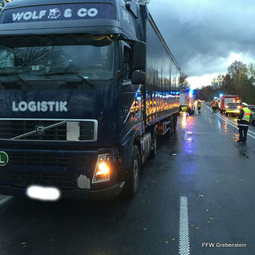 Die Feuerwehr wurde zu einem Verkehrsunfall mit einer eingeklemmtem Person und einem Großfahrzeug alarmiert. Vermutlich wollte ein PKW auf B 83 Fahrtrichtung Hofgeismar einen LKW überholen und streifte dabei einen anderen PKW, kam ins Schleudern und wurde von einem LKW erfasst.