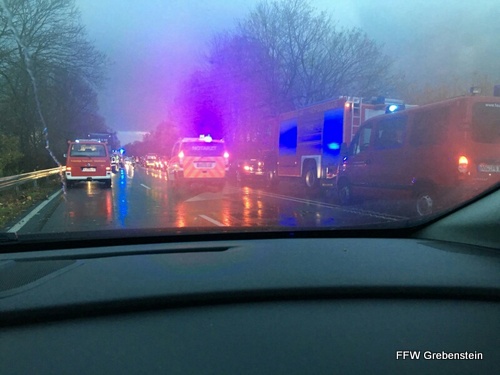Bei Ankunft der Feuerwehr war die Person bereits aus dem PKW befreit und wurde vom Rettungsdienst versorgt. Durch die Feuerwehren wurde die Einsatzstelle abgesichert und die Polizei unterstützt. Neben den Feuerwehren der Stadt Grebenstein waren 2 Rettungswagen, 1 Notarzt und die Polizei mit im Einsatz. Der mitalarmierte Kranwagen der Berufsfeuer Kassel wurde nicht mehr benötigt und konnte die Einsatzfahrt noch vor Eintreffen an der Einsatzstelle abbrechen.