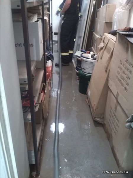Die Feuerwehr wurde zu einem Firmengebäude in die Marktstrasse alarmiert. Nach starken Regen war Wasser in die Kellerräume des Gebäudes eingetreten.