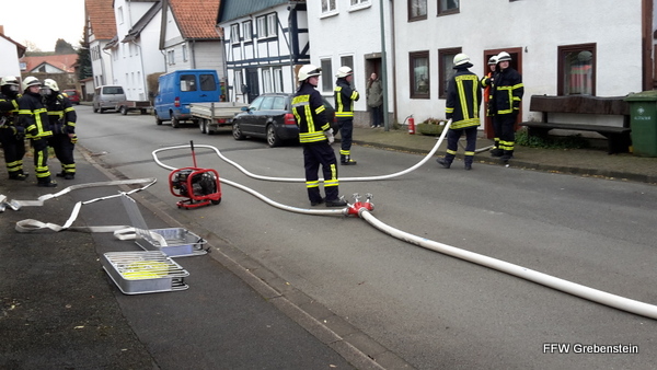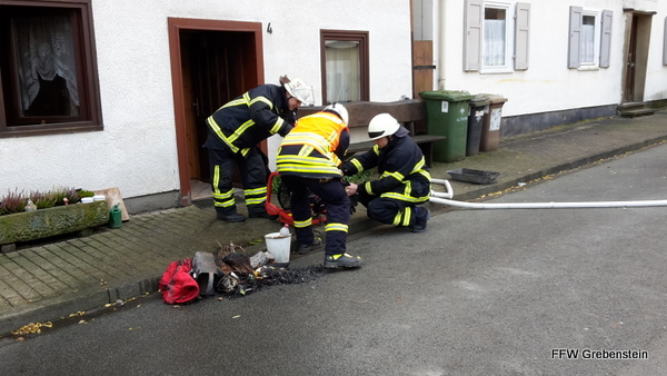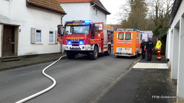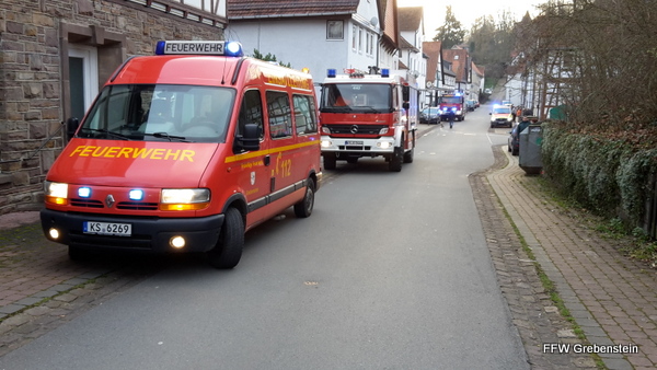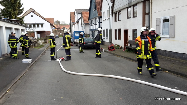 Die Feuerwehren der Stadt Grebenstein wurden zu einem Gebäudebrand in die Höllegasse alarmiert. Beim Eintreffen der Feuerwehr Grebenstein wurden glimmende Holzreste vor einem Ofen vorgefunden. Die Holzreste wurden aus dem Haus entfernt und abgelöscht. Der im Haus vorhandenen Brandqualm wurde mit Hilfe eines Druckbelüfters entfernt. Eine ältere Person, die sich im Haus befand wurde durch eine Nachbarin bereits vor dem Eintreffen der Feuerwehr aus dem Haus gebracht. Die Nachbarin wurde durch die im Haus ausgelösten Rauchmelder auf den Brand aufmerksam und alarmierte die Feuerwehr.