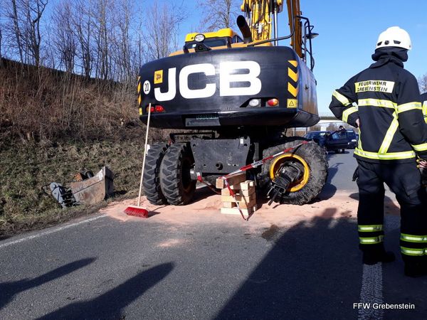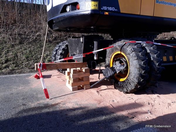 Die Feuerwehr Grebenstein wurde zur Unterstützung der Feuerwehr Burguffeln zu einem Verkehrsunfall auf der Bundesstrasse 83 nach alarmiert. In den frühen Morgenstunden war in einer Baustelle ein Personenkraftwagen gegen einen Bagger gefahren. Durch die Feuerwehr Grebenstein wurde der Bagger mit Rüsthölzern gegen ein Umfallen gesichert.