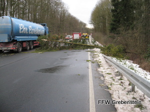 Die Feuerwehr Grebenstein wurde zunächst zur Herstellung der Einsatzbereitschaft in Folge von Sturmschäden nach dem Tief "Friederike" alarmiert. Ingesamt mussten 10 Einsatzstellen angefahren werden. Dabei waren in der Hauptsache Bäume von Fahrbahnen zu entfernen oder Einsatzstellen sicher zu abzusperren, sodass die Gefahr für den Verkehr genommen wurde. Außerdem wurden Ziegeln von Dächern geweht. Da während des Sturmes vor allem auch der Eigenschutz eine wichtige Aufgabe ist - musste sehr behutsam agiert werden.