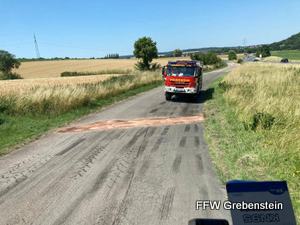 Am 08.07.2023 wurde die Feuerwehr Grebenstein um 12:33 zu einer Ölspur auf dem Wirtschaftsweg parallel zur B83 alarmiert.