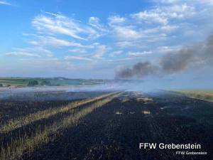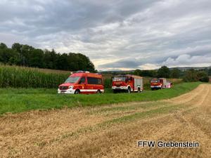 Am 08.07.2023 um 20:23 wurde die Feuerwehr Grebenstein mit allen Ortsteilen zu einem FWALD2 alarmiert. Beim Eintreffen brannten ca. 2 Hektar eines zum Teil geernteten Feldes.