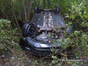 Die Feuerwehr Grebenstein wurde zu einem Verkehrsunfall mit eingeklemmter Person in die Schachter Strasse alarmiert. Auf der Aufffahrt zur Bundesstrasse 83 kam ein Personenkraftwagen von der Strasse ab und landete im Gebüsch vor der Brücke über die Bundesstrasse 83. Beim Eintreffen der Feuerwehr war ausser der Polizei keine weitere Person mehr Vorort. Die Polizei wurde bei der Personensuche im Umfeld der Unfallstelle unterstützt.