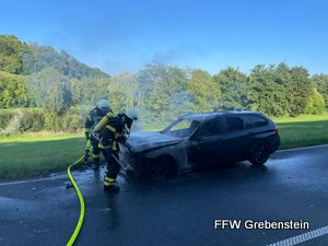 Die Feuerwehr Grebenstein wurde zu einem PKW-Brand auf die Bundesstrasse 83 alarmiert. Beim Eintreffen der Feuerwehr stand das Fahrzeug bereits im Vollbrand. Durch die Feuerwehr wurde die Einsatzstelle abgesichert und der Brand unter Atemschutz abgelöscht.