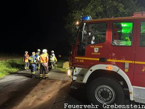 Die Feuerwehren der Stadt Grebenstein wurden zu einem Propangastank mit ausströmenden Gas alrmiert. Durch einen herabgefallen Ast aufgrund des vorangegangenen Sturms wurde das Ventil eines Propangastankes beschädigt. Die Folge war herausströmendes brennbares Gas, dass die Umgebung zu einen hochexplosiven Bereich machte. Zunächst wurde ein 300m großer Gefahrenbereich abgesperrt. Unter größter Vorsicht wurde dann erst der Ast entfernt und das Leck abgedichtet. Der restliche Inhalt des Gastanks wurde dann umgepumpt. Zur Beobachtung der Lage war eine Drohne im Einsatz. Mit vor Ort waren die Feuerwehr Wolfhagen, die Berufsfeuerwehr Kassel, Rettungsdienst und Polizei.