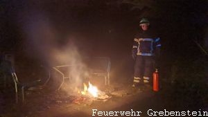 Die Feuerwehr Grebenstein wurde zu brennenden Unrat Am Wassergraben alarmiert. Zwei Jugendliche hatten auf dem Spielplatz am Papengrund gezündelt und auf den dortigen Metall-Sitzgelegenheiten Sachen verbrannt. Ein Anwohner hat einen der Täter gestellt und er konnte der Polizei übergeben werden. Durch die Feuerwehr wurde der Brand schnell abgelöscht.