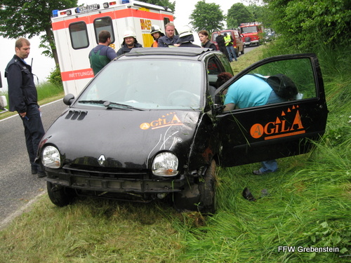 | 27. Mai 2008 | Verkehrsunfall Ortsausgang Udenhausen Alarmierungszeit: 09:36 Einsatzdauer: 0:54 Einsatzstärke: 18 Kurz hinter der Ortsausfahrt von Udenhausen überschlug sich ein PKW und blieb auf der Seite im Graben liegen. Die Fahrerin konnte ohne die Zuhilfenahme von Rettungsgeräten aus dem PKW befreit und an den Rettungsdienst übergeben werden. Neben der Feuerwehr Grebenstein waren Polizei, 2 Rettungswagen, der Rettungshubschrauber Christoph 7 und die Feuerwehr Udenhausen im Einsatz. Die Fahrerin wurde mit dem Rettungshubschrauber ins Krankenhaus geflogen. ![]() |