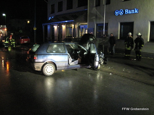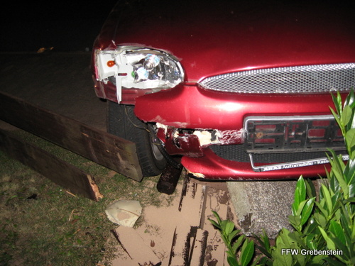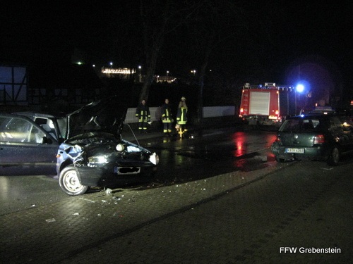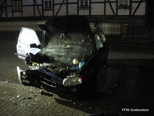 | 20. Januar 2008 | Verkehrsunfall Kreisstrasse Westuffeln - Grebenstein L3233 Alarmierungszeit: 19:18 Einsatzdauer: 1:07 Einsatzstärke: 16 Auf der Fahrt von Westuffeln nach Grebenstein geriet ein PKW in einer Linkskurve von der Fahrbahn ab. Er durchfuhr den Strassengraben, drehte sich dabei und flog ca. 30 m durch die Luft. Der PKW landete seitlich entgegen der Fahrtrichtung im Graben. Der Fahrer des Wagens wurde bewusstlos neben dem Wagen aufgefunden. Da unklar war, ob noch weiter Personen im PKW waren, wurde eine Suchaktion in dem naheliegenden Tannenwäldchen durchgeführt. Nach Rücksprache mit der Polizei wurde die Suche nach 20 Minuten ergebnislos abgebrochen. Durch die Feuerwehr wurde die Strasse gesperrt, die Unfallstelle ausgeleuchtet und der PKW wieder auf die Räder gestellt. Der schwer verletzte Fahrer des PKW wurde in das Klinikum Kassel gebracht. |
