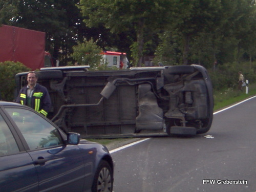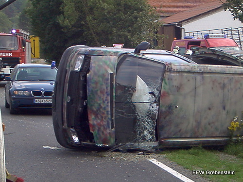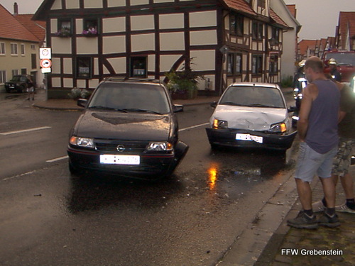 | 15. Juli 2005 | Verkehrsunfall Grebenstein Obertor Alarmierungszeit: 20:47 Einsatzdauer: 0:28 Einsatzstärke: 9 Durch die Feuerwehr wurden ausgelaufenen Betriebsstoffe aufgenommen.