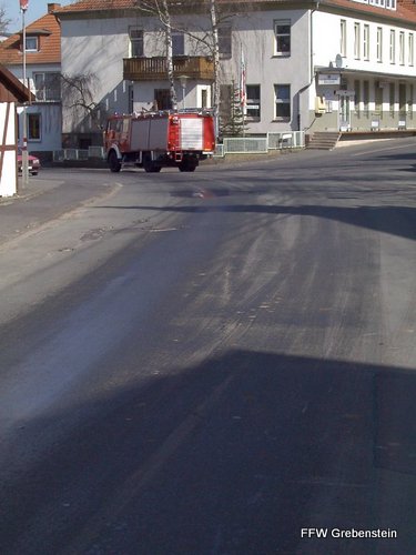| 16. Juli 2003 | Graßnarbenbrand Handballplatz Grebenstein Alarmierungszeit: 18:30 Einsatzdauer: 0:15 Einsatzstärke: 9 Alarmierungsstärke: 16 Ca. 80 m² Graßnarbe und Strohreste wurden von der Feuerwehr abgelöscht. |