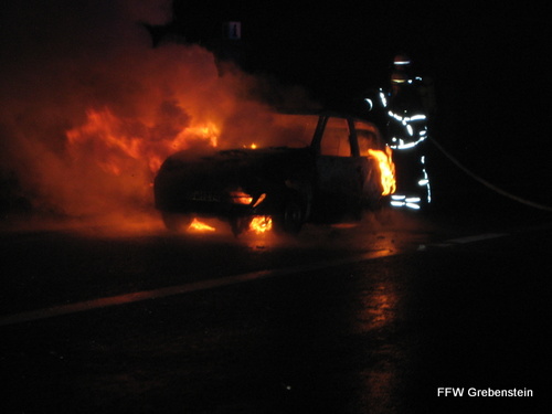 PKW-Brand Borneweg Udenhausen Alarmierungszeit: 19:46 Einsatzdauer: 0:34 Einsatzstärke: 18 Die Feuerwehr wurde zu einem PKW-Brand in Udenhausen zur Unterstützung der Feuerwehr Udenhausen mit alarmiert. Ein Eingreifen der Feuerwehr Grebenstein war nicht erforderlich. Der PKW wurde bereits vor dem Eintreffen der Feuerwehr mit Feuerlöschern abgelöscht.