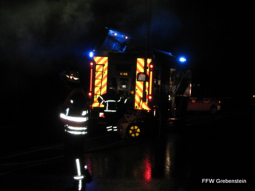 Auslaufende Betriebsstoffe Kreisstrasse 3233 Bahnunterführung Grebenstein Alarmierungszeit: 19:55 Einsatzdauer: 0:35 Einsatzstärke: 14 Durch die Feuerwehr wurden ca. 10 Liter Diesel von der Fahrbahn durch Abstreuen aufgenommen.