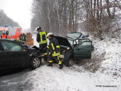 Verkehrsunfall Bundestrasse 83 zwischen Grebenstein und BurguffelnAlarmierungszeit: 11:05Einsatzdauer: 0:40Einsatzstärke: 14 |
