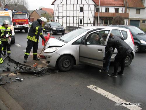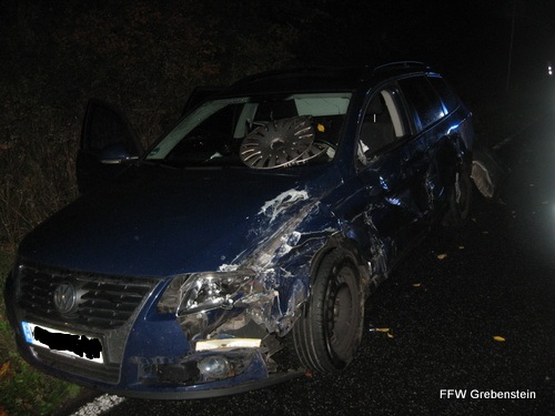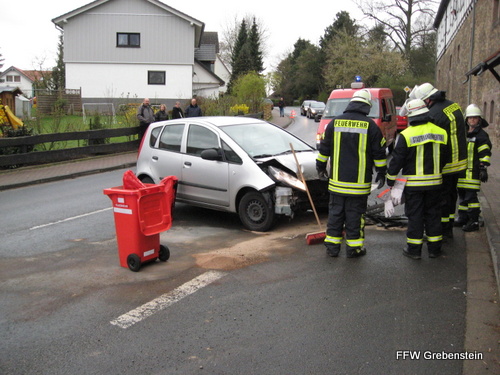 Verkehrsunfall BurguffelnAlarmierungszeit: 15:13 UhrEinsatzdauer: 0:32Einsatzstärke: 8Aus ungeklärten Gründen kam ein PKW aus Calden kommend ins Schleudern und stieß gegen die Sandsteinmauer vor Gebäude der Grebensteiner Wohnstätten. Der Fahrer wurde vom Rettungsdienst betreut. Durch die Feuerwehr wurde die Unfallstelle abgesichert und auslaufende Betriebsstoffe aufgenommen. |