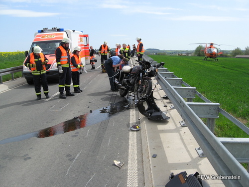 Verkehrsunfall Kreisstrasse Grebenstein ImmenahsuenAlarmierungszeit: 12:40 UhrEinsatzdauer: 1:15Einsatzstärke: 16Ein Motorradfahrer übersah beim Überholen auf der Kreisstrasse zwischen Grebenstein und Immenhausen ein entgegenkommendes Fahrzeug und kollidierte leicht mit dem Fahrzeug beim Versuch eines Ausweichmanövers. Durch die Feuerwehr wurde die Einsatzstelle abgesichert und der Rettungsdienst bei der Personenbetreuung unterstützt. |