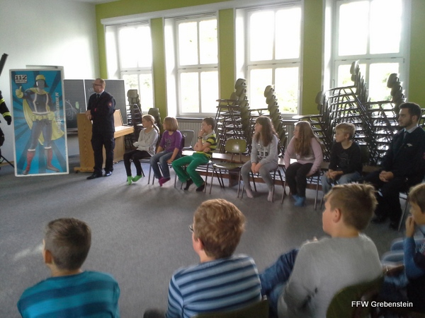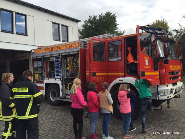 Aktion, Spaß und Teamgeist für junge Leute wird Jungen und Mädchen in der Jugendfeuerwehr Grebenstein geboten. Davon konnten sich die drei 4. Klassen der Burgbergschule jetzt überzeugen. Zu jeweils zwei Schnupperstunden für jede Klasse kam die Freiwillige Feuerwehr in die Grundschule. Gespannt und interessiert hörten die Schüler zu, was die Feuerwehrleute über das spannende und zugleich sinnvolle Hobby aus dem Alltag der „Freiwilligen Feuerwehr“ zu berichten hatten. Anschließend durften Sie selber Gerätehaus und Fahrzeuge erkunden.